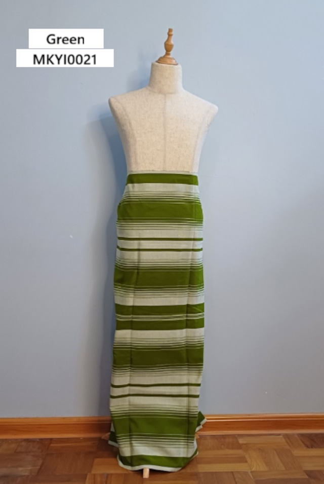 ***在庫場所ヤンゴン:納期2か月*** これは、カヤー族の伝統生地で作られた巻きスカートです。 ミャンマーのロンジースタイルにインスパイアされており、ウエストに心地よく巻きつけられる可愛らしいタイウエストデザインが特徴です。 紐を横に結んでリボンの形にすると、よりキュートな印象に。 夏でも冬でも着用でき、季節を問わず楽しめます。 ツートンカラーのブロックチェック柄が、シンプルながらも洗練された印象を与えます。 フリーサイズなので、どなたでも気軽に着用できます! サイズ情報 フリーサイズ(丈 = 90cm) グリーン フリーサイズ(丈 = 88cm) ピンク カラー : グリーン、ピンク 数量 : 1点のみ This is a wrap skirt made from Kayah tribal fabric. Inspired by Myanmar's longyi style, it features a charming tie waist that allows you to wrap it comfortably around your waist. Tying the string horizontally to form a ribbon gives it a cute appearance. It can be worn in both summer and winter. The two-tone block check pattern adds a simple yet smart touch. It’s free size, so anyone can wear it with ease! Size Information Free Size (Length = 90cm) Green Free Size (Length = 88cm) Pink Colour : Green , Pink Quantity : Only One