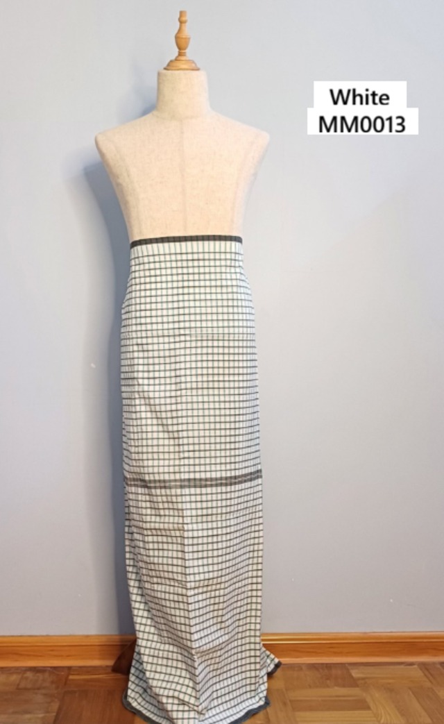 [ ミャンマー伝統織物 モン族 モン メンズロンジー総柄生地 ] Mon Men's Longyi {White}