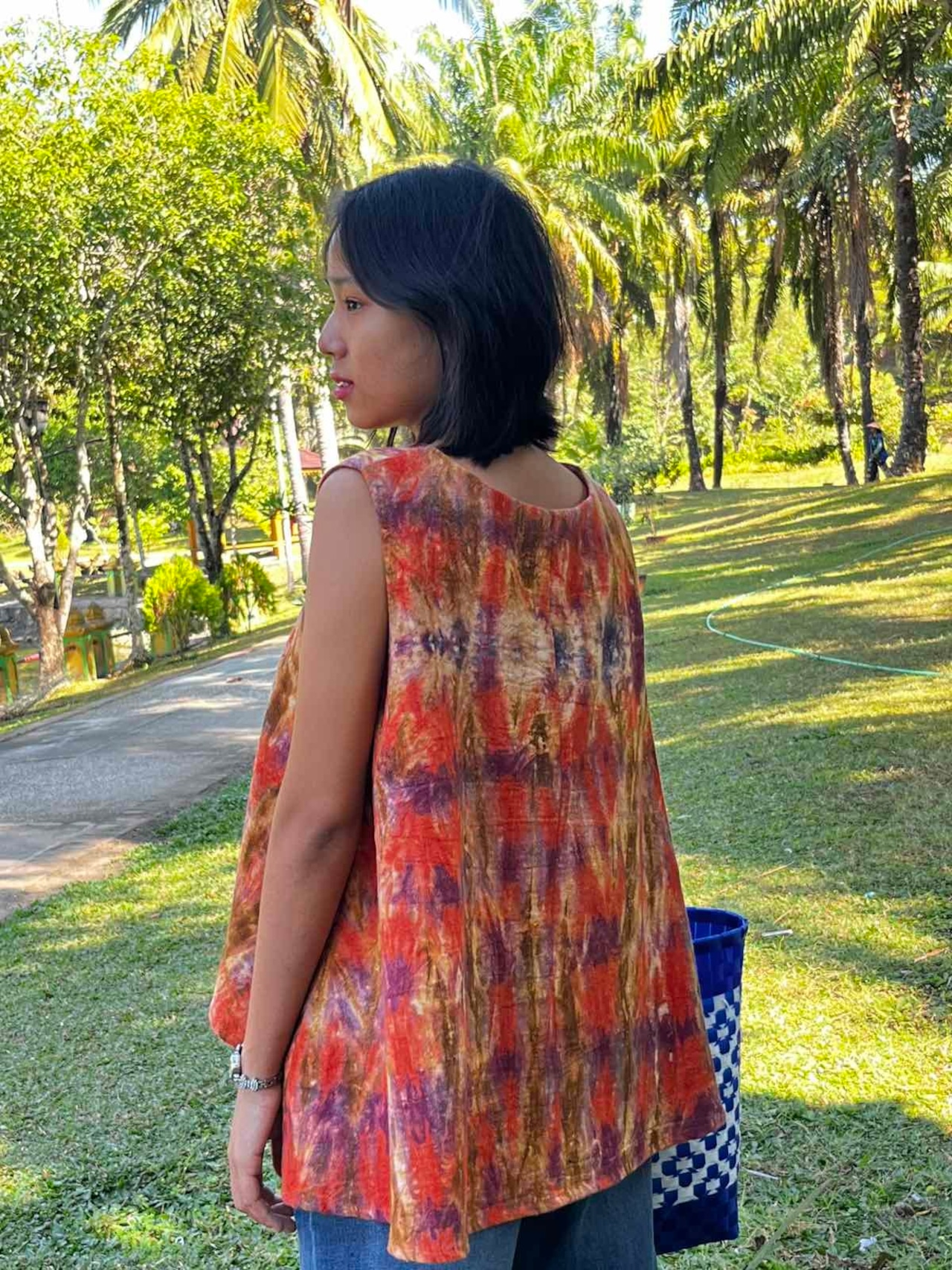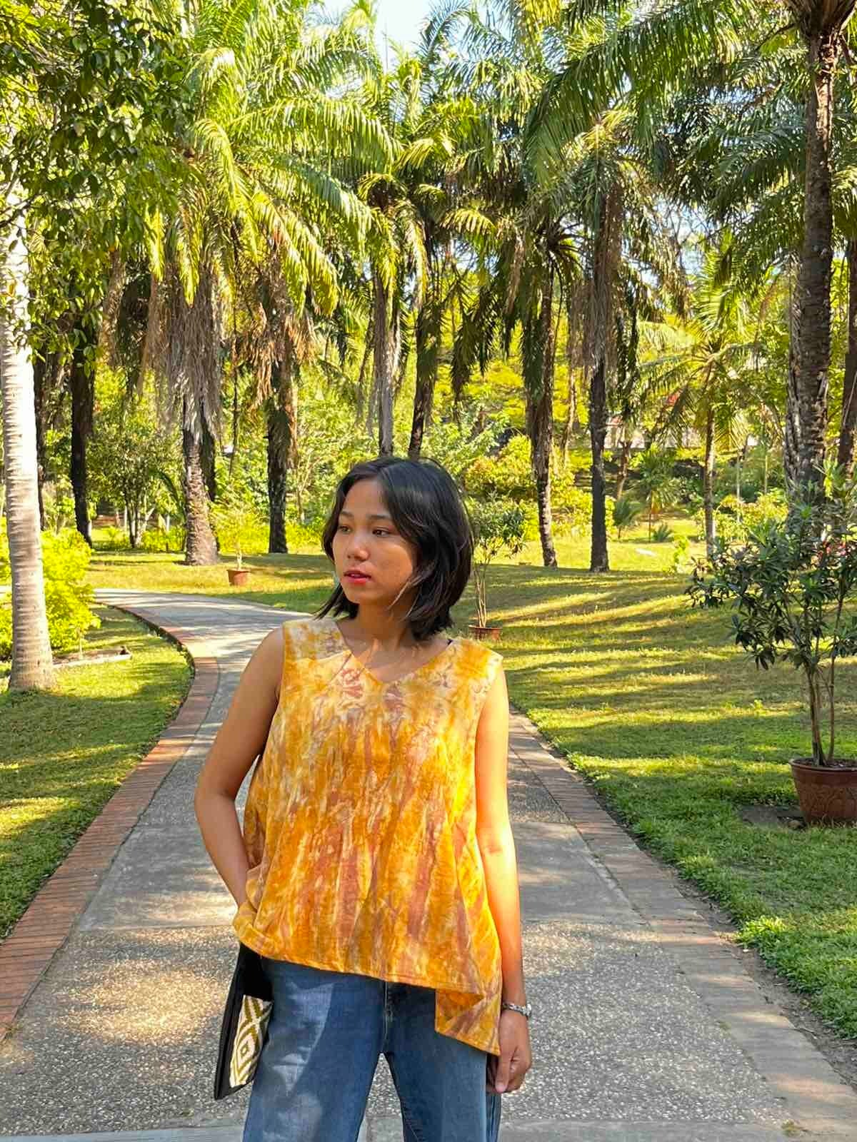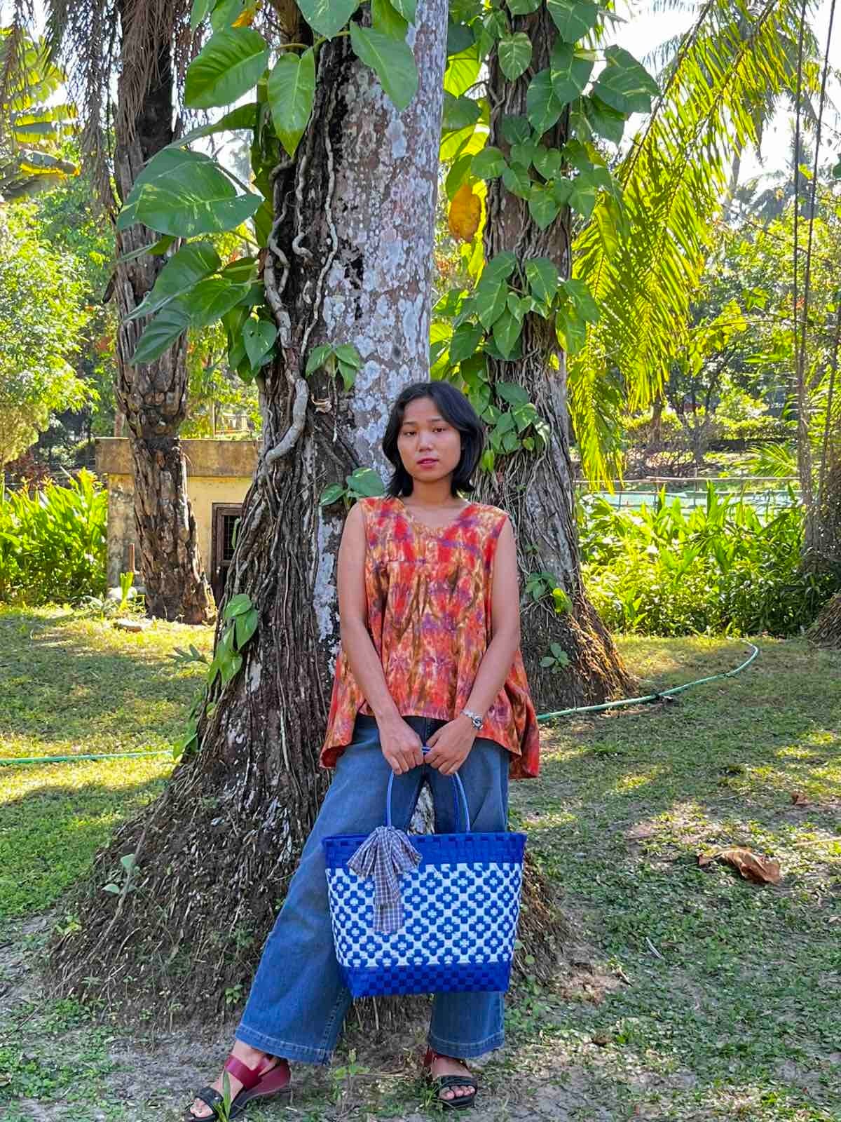 ミャンマー・シャン州の織物「インレイタイダイ」を使用した、ゆっ