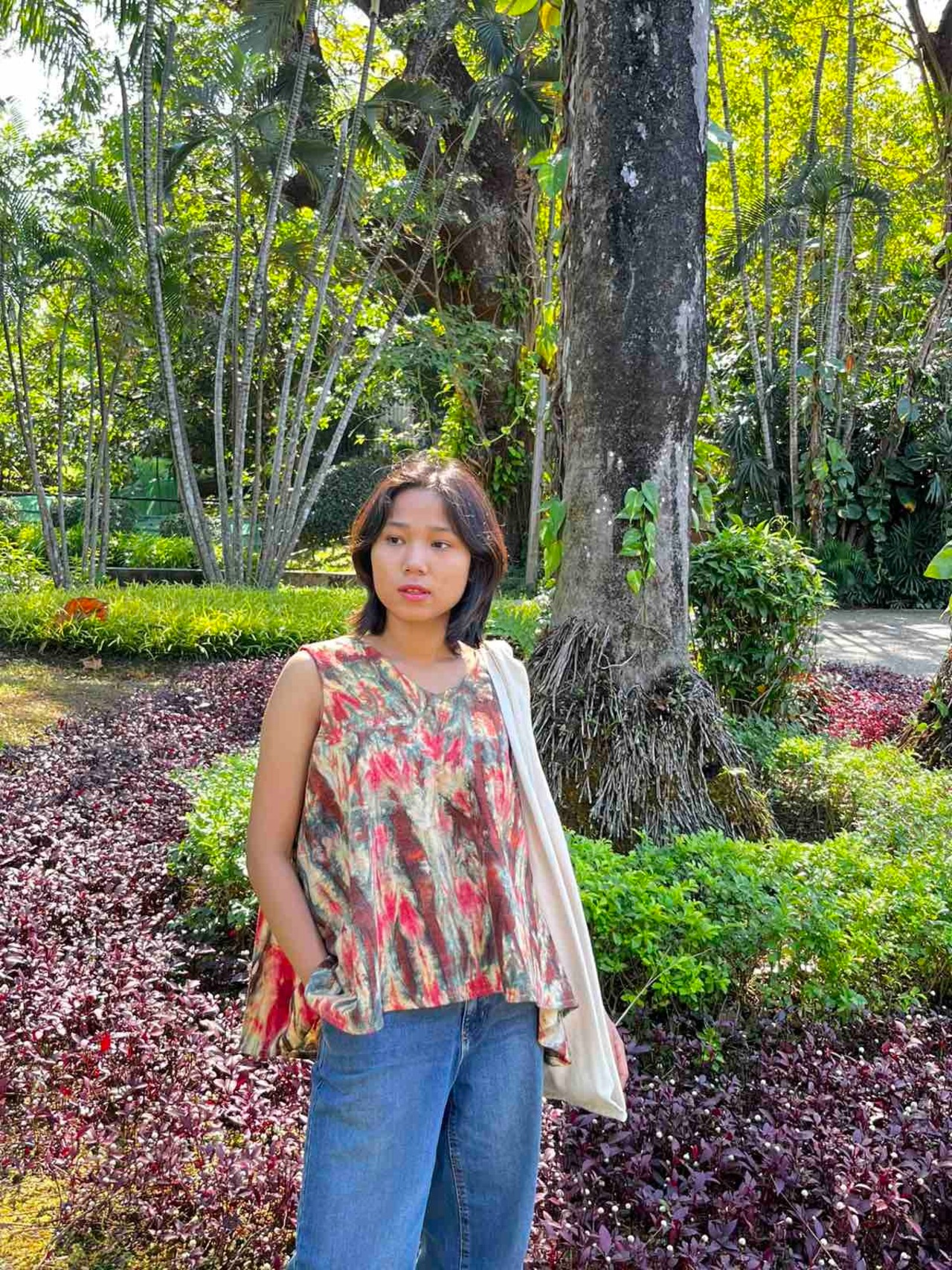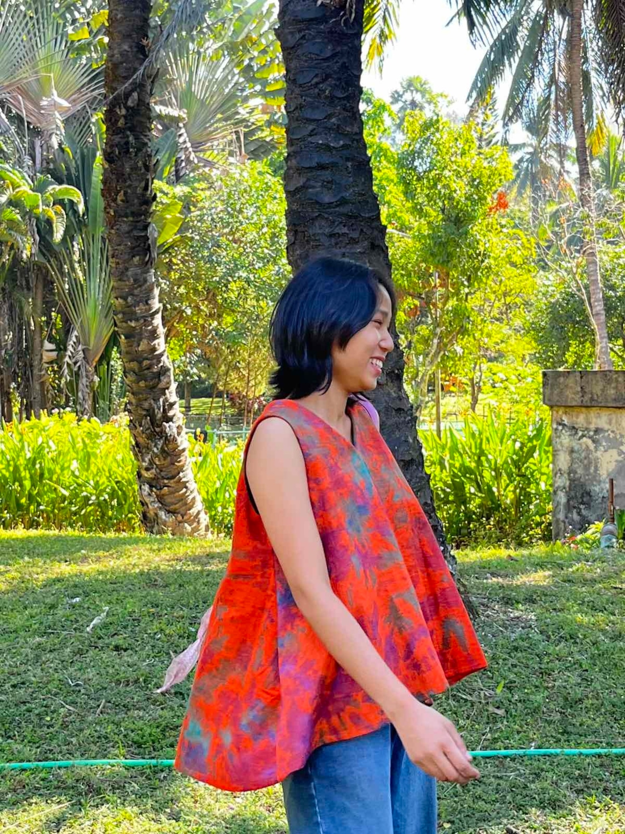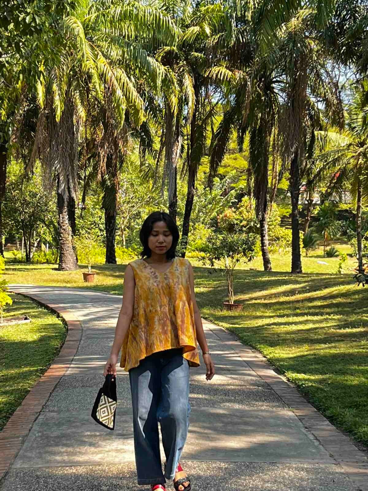 ミャンマー・シャン州の織物「インレイタイダイ」を使用した、ゆっ
