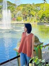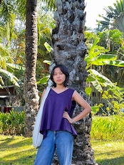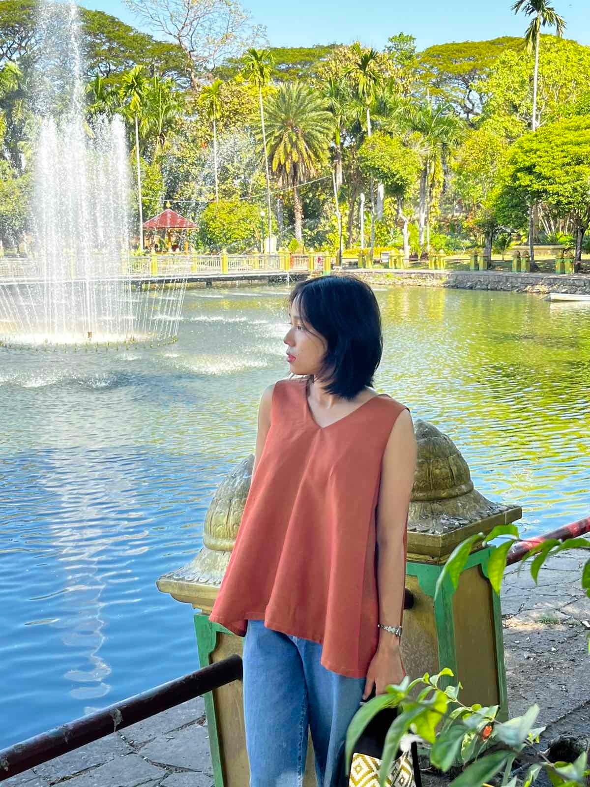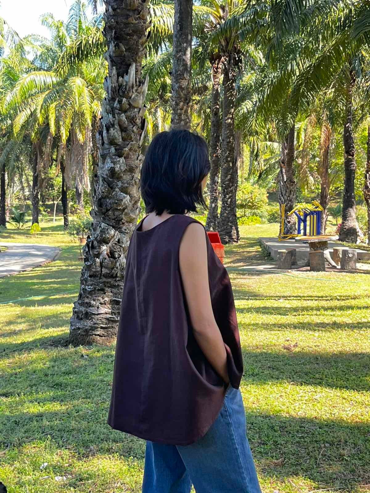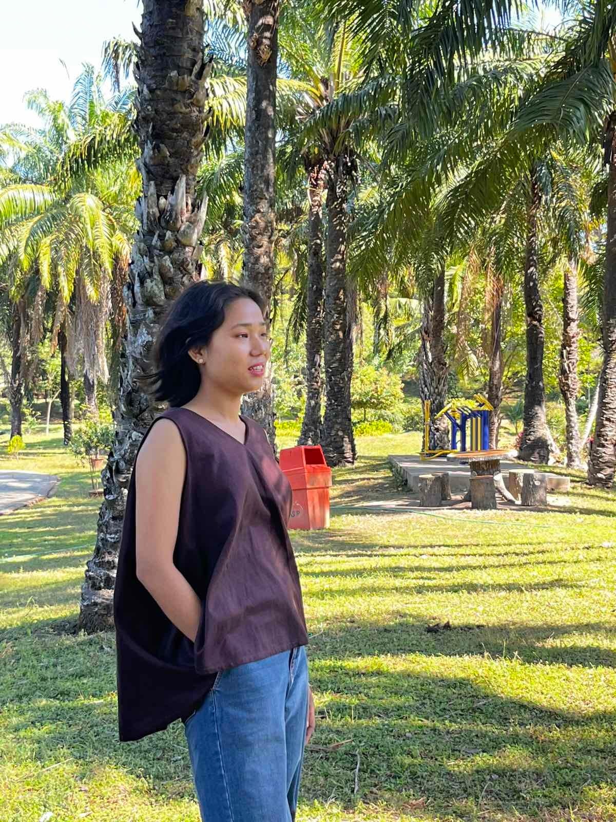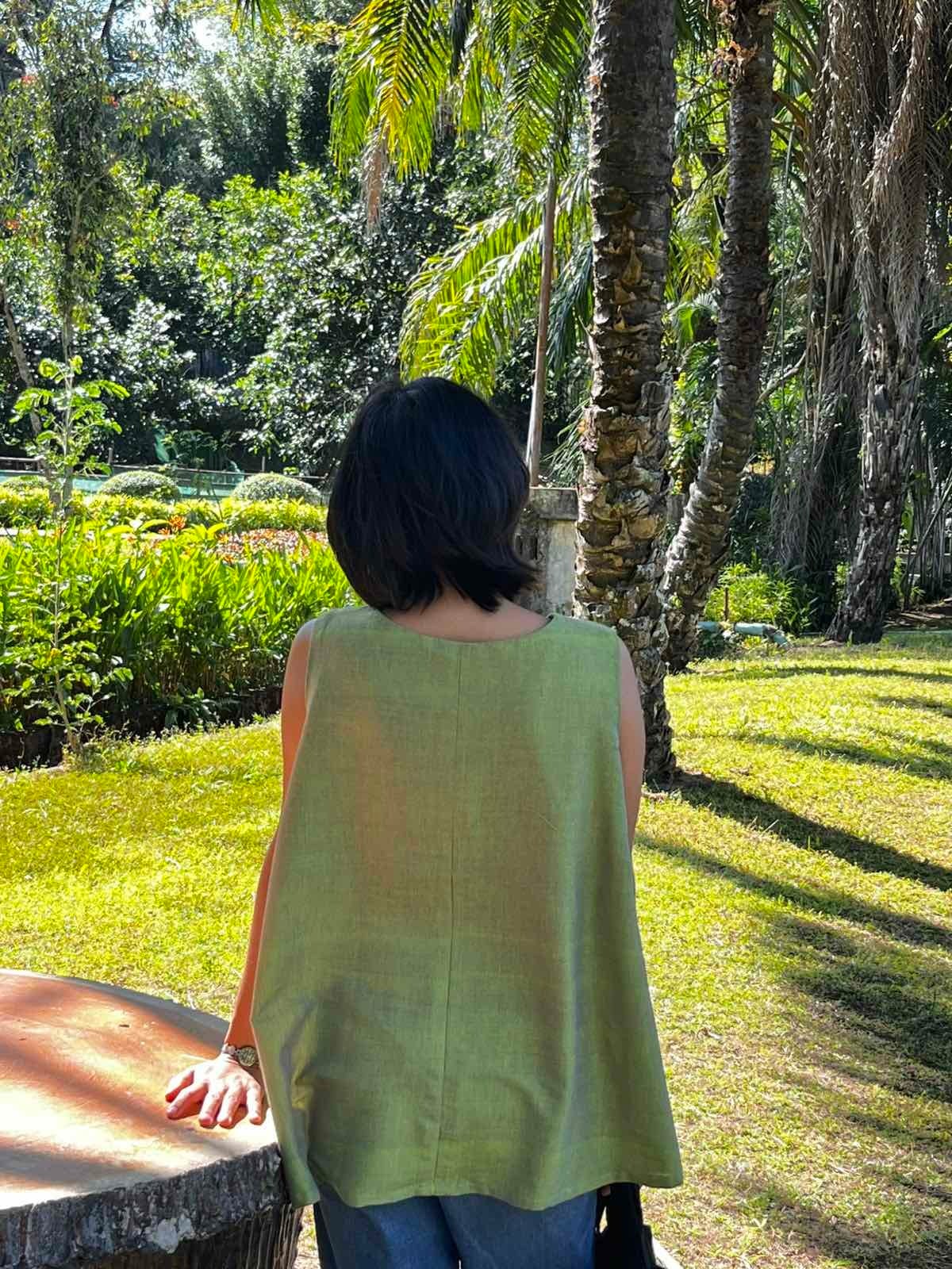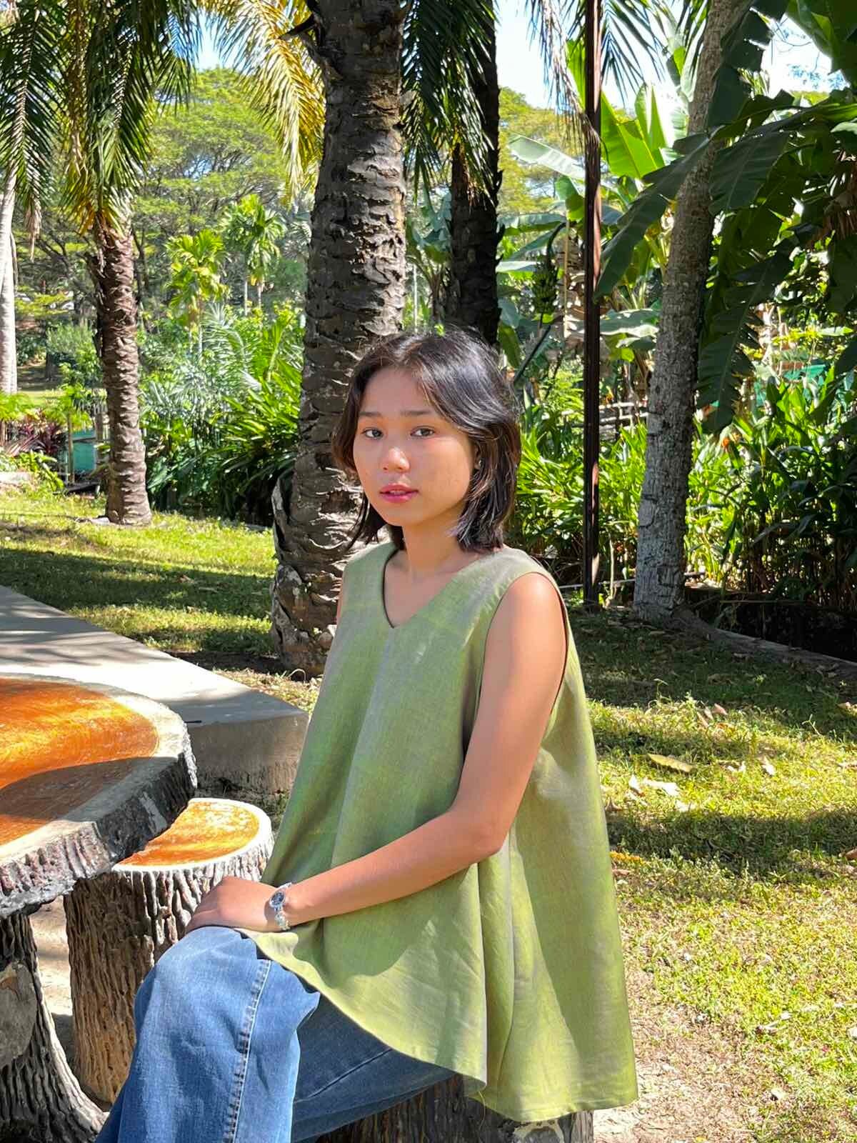 ミャンマーのマンダレー地域にある織物の町、アマラプラで織られているコットン布のゆれるブラウスです。