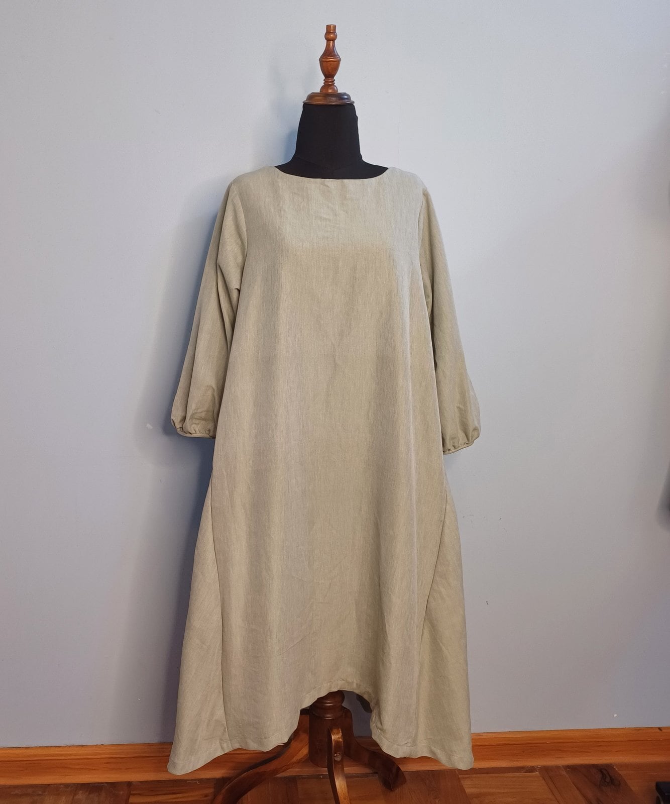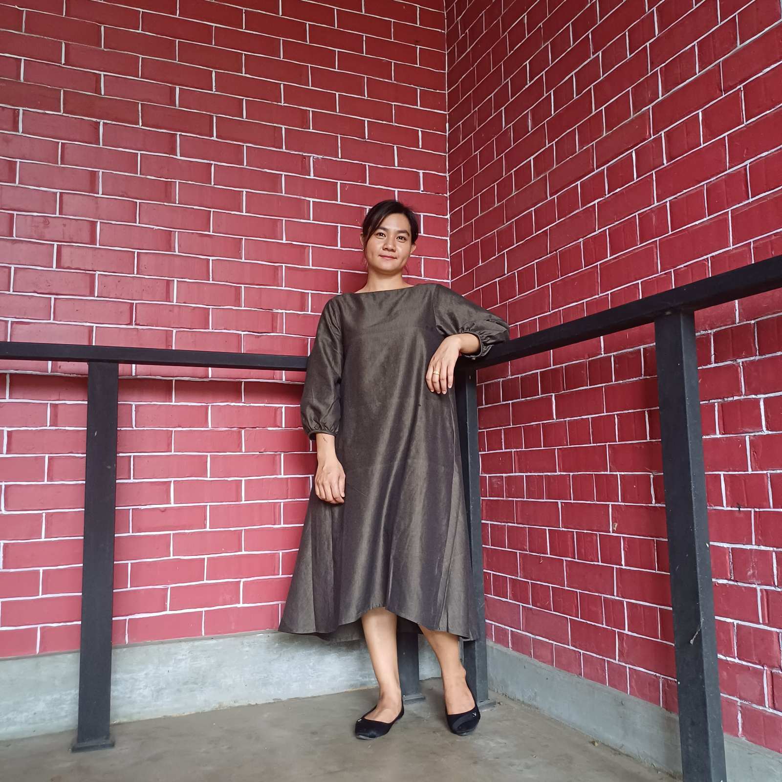 ミャンマーの伝統とモダンが融合した『アマラプラ 長袖 アシンメトリックドレス』。