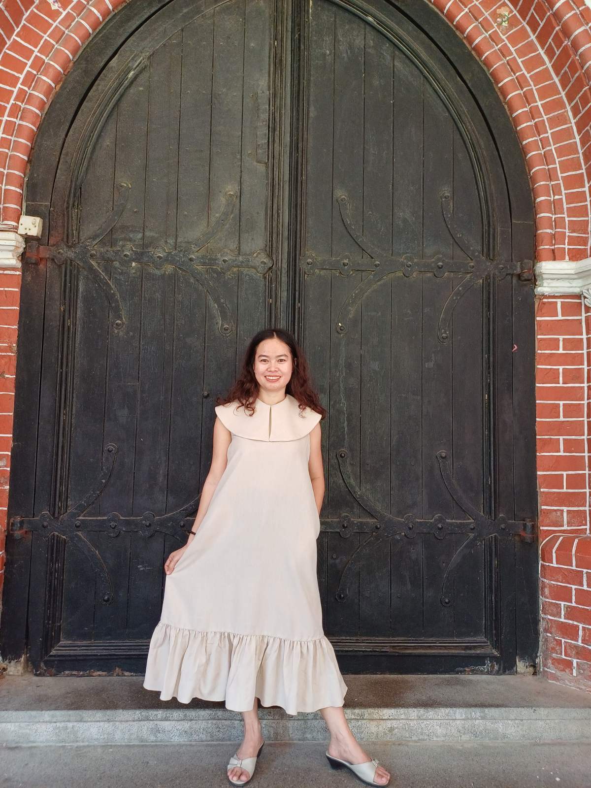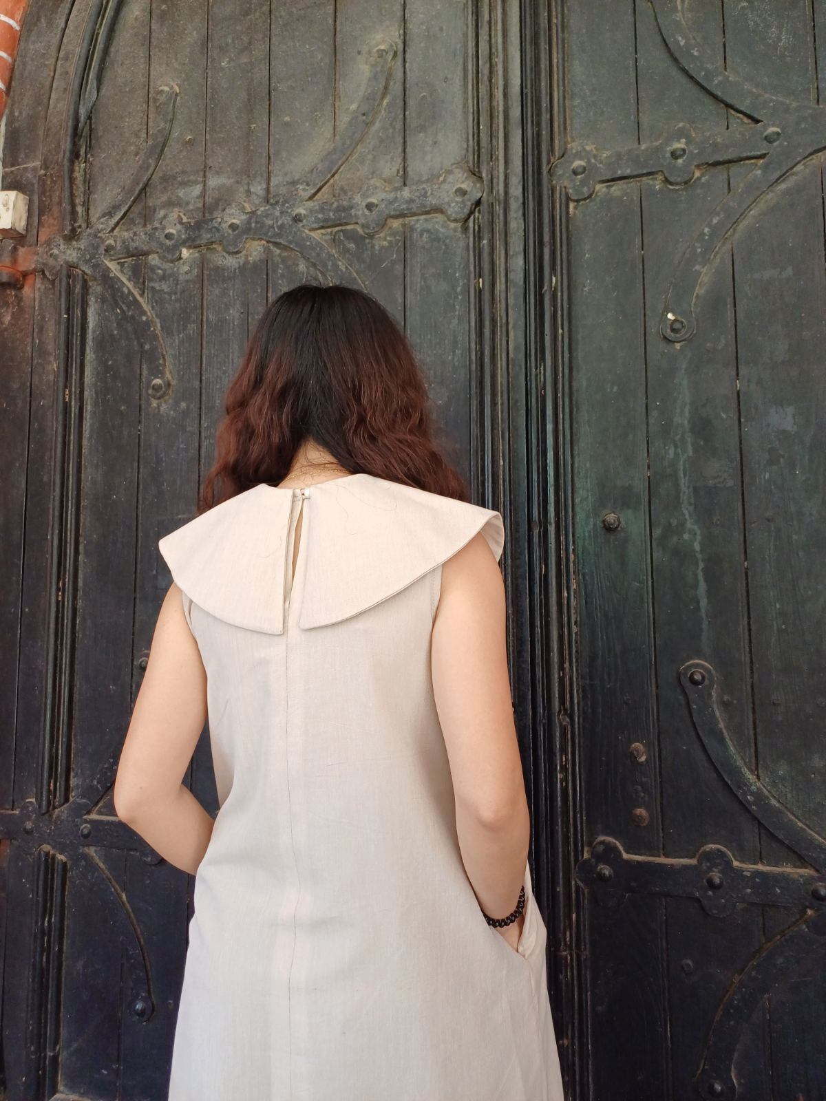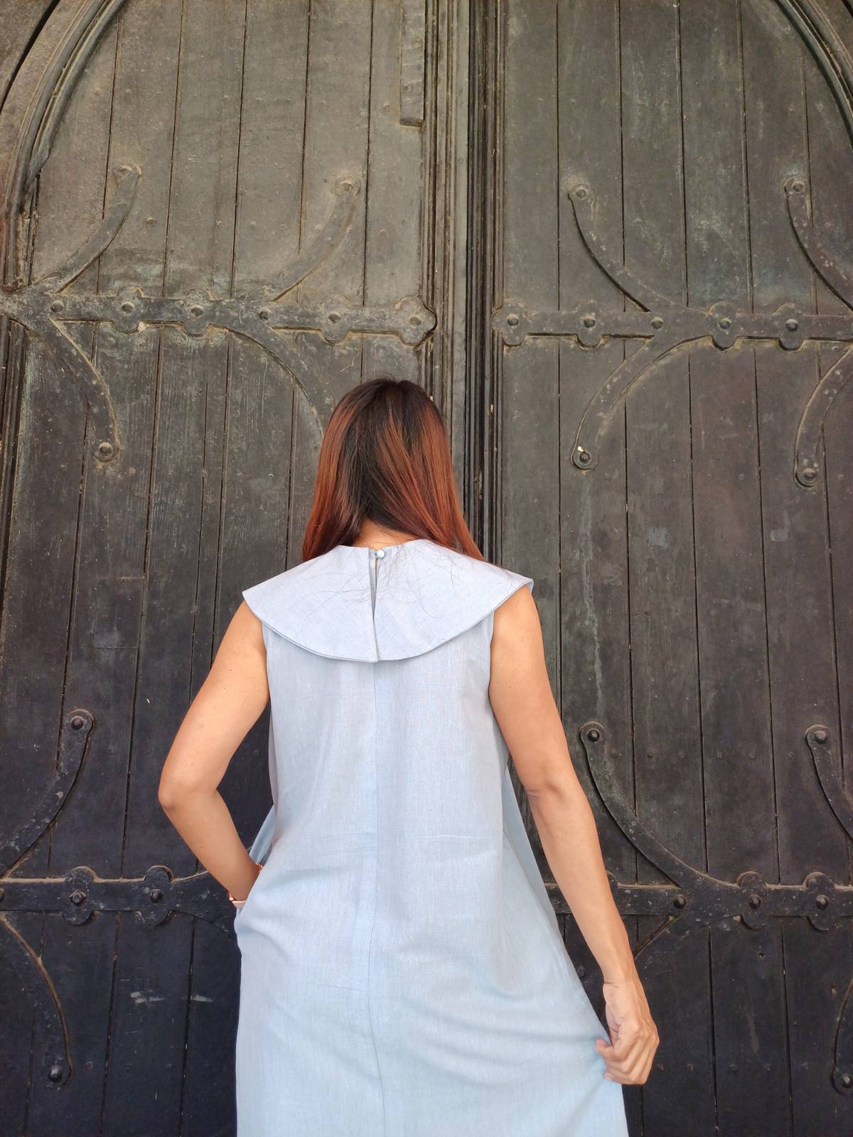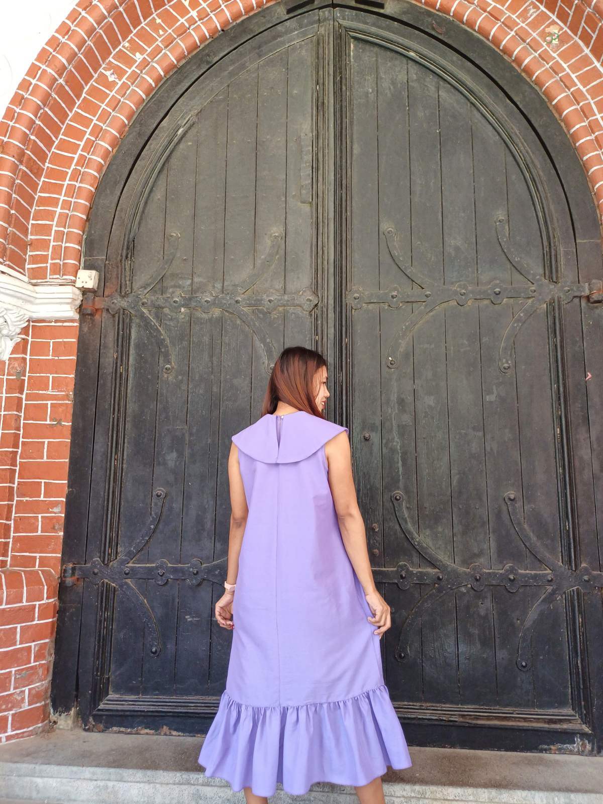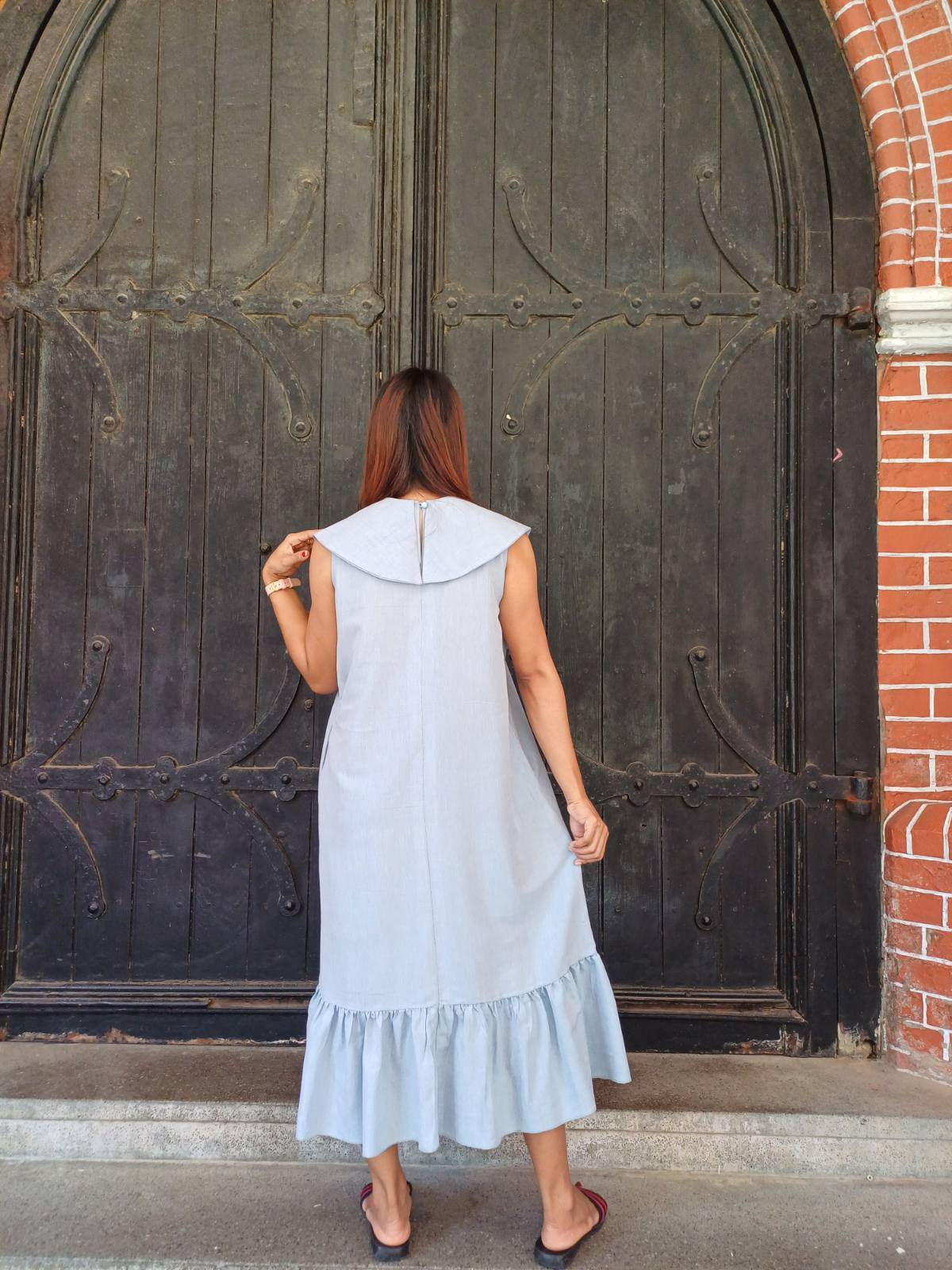 袖のないスッキリとしたデザインに、裾の柔らかなラッフル(フリル)が加わることで、歩くたびに美しく揺れるフェミニンなシルエットを実現しました。