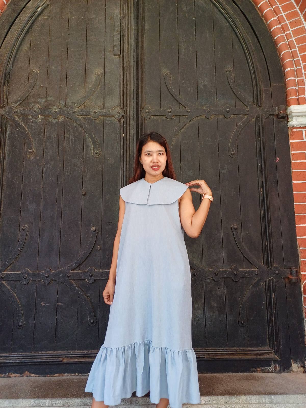 上質な手織りコットンを贅沢に使用した、大人可愛いロングドレスです。
