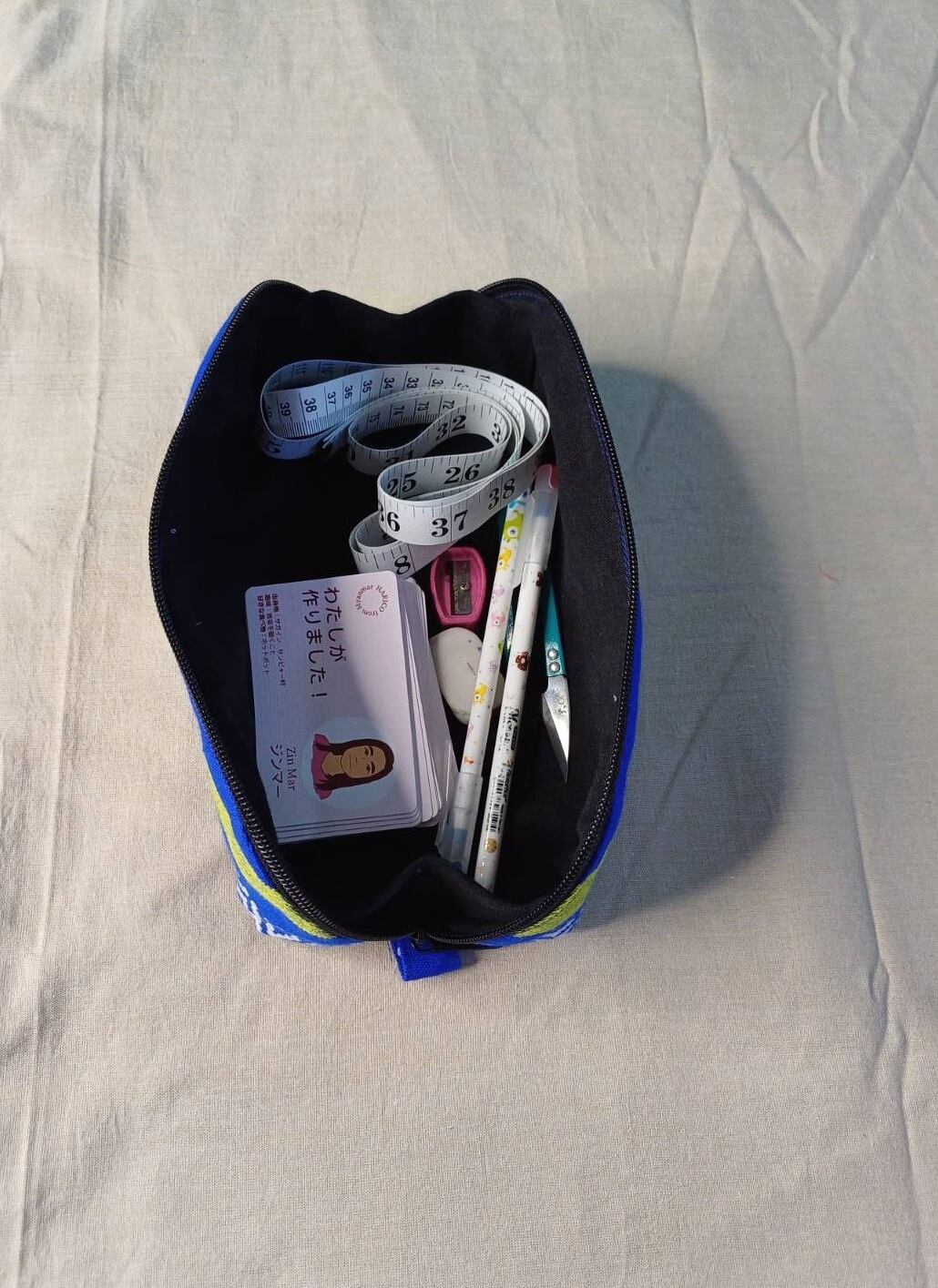 バッグの中に入れておくだけで気分が上がるような、鮮やかなブルーと伝統的な幾何学模様のコントラストが魅力。