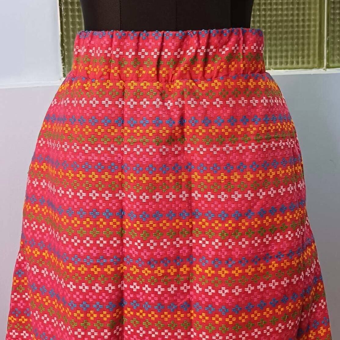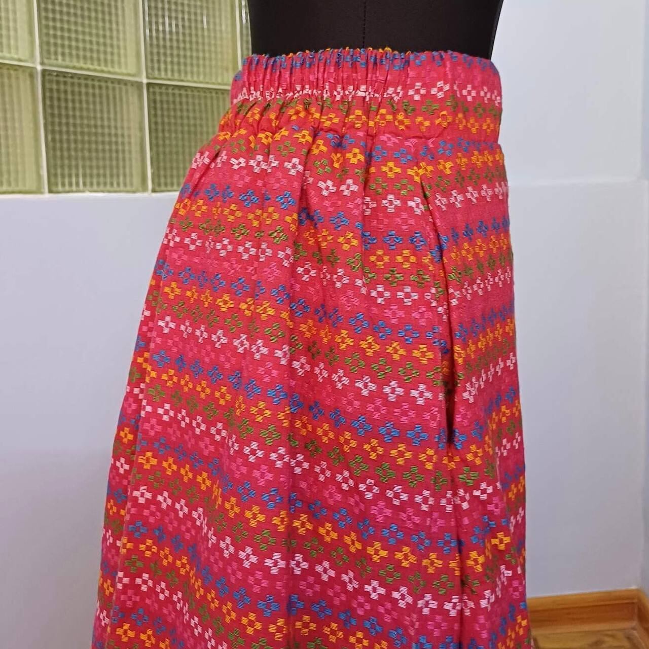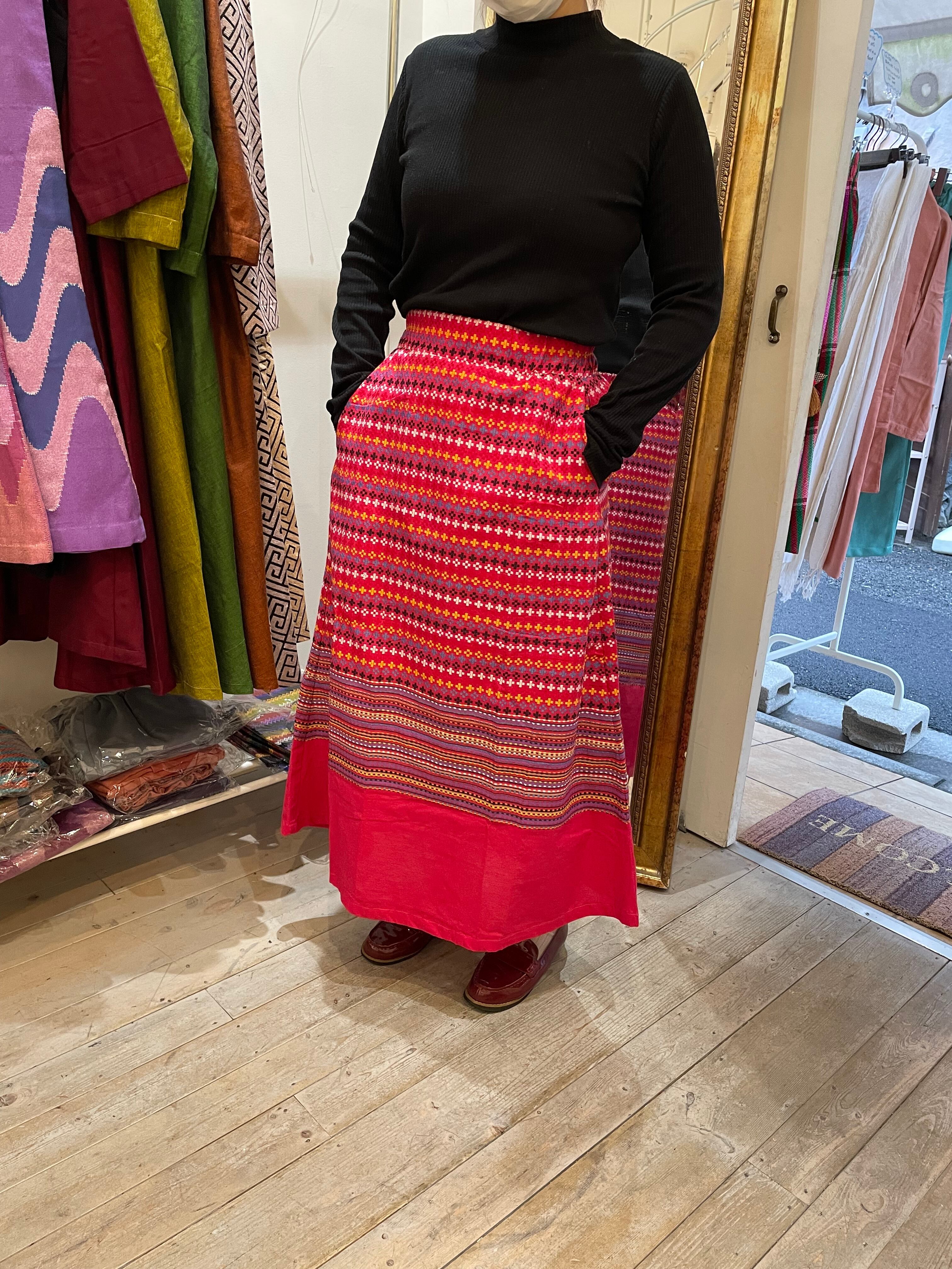 モンクラシックセミフレアスカートは、ミャンマーモン族の伝統的な生地を使用したフレアスカートです。ミャンマーではお出かけの際やお祝い、伝統的なパーティーの場で着られるフォーマルな服ですが、カジュアルなトップスと合わせることで毎日の通勤にもピッタリです。