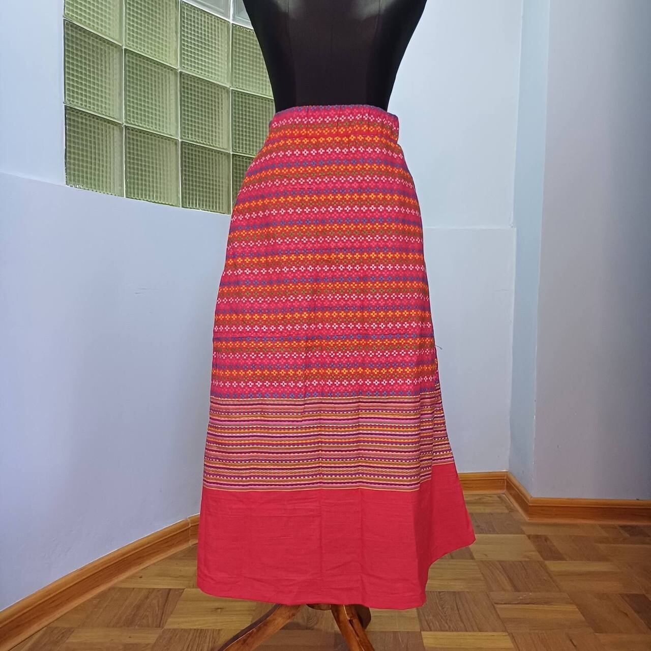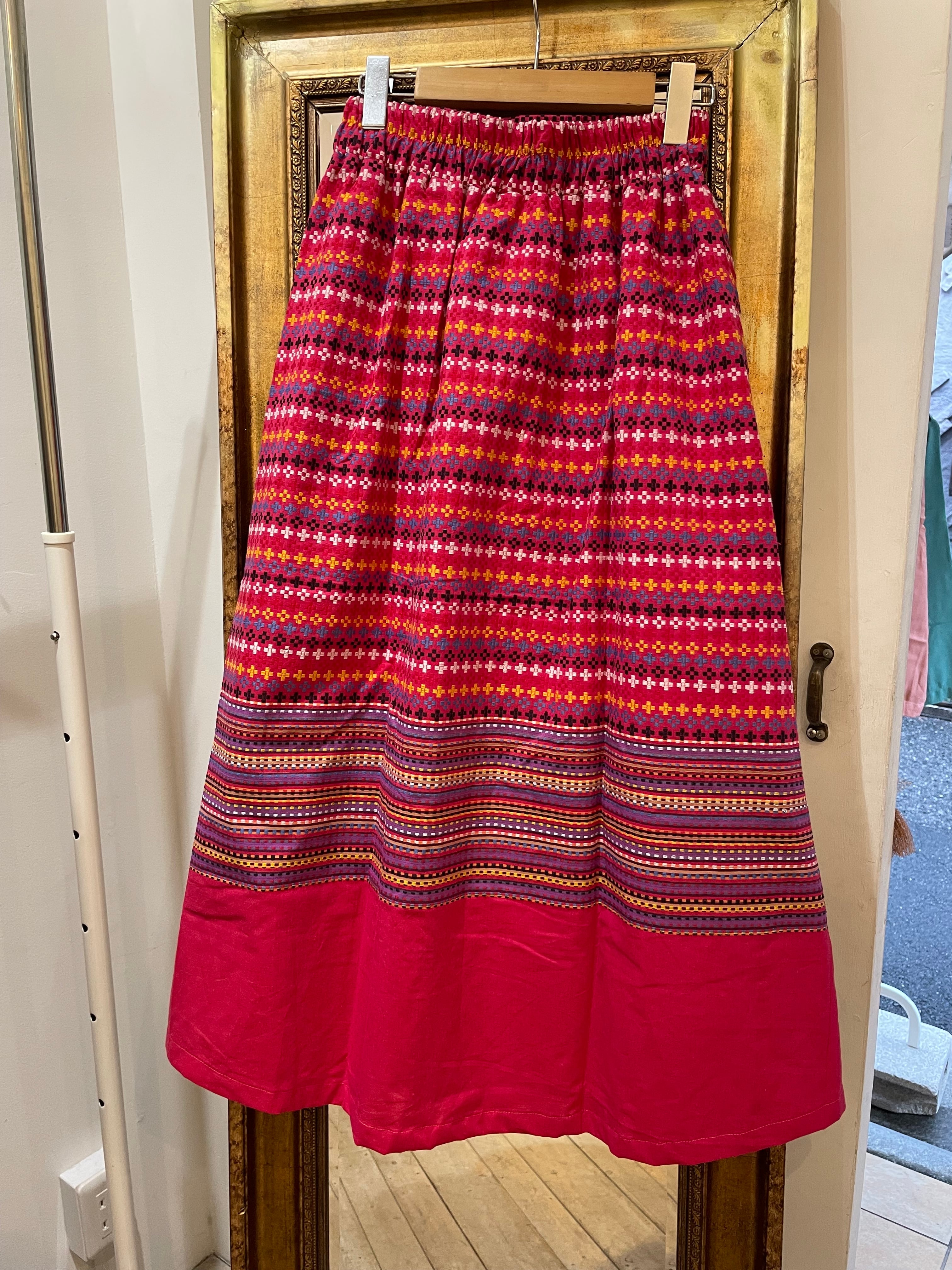 The Mon Classic Semi-Flared Skirt is a flared skirt made with traditional fabric of the Mon people of Myanmar. In Myanmar, it is worn as formal attire for outings, celebrations, and traditional parties, but it pairs perfectly with casual tops for everyday commuting.