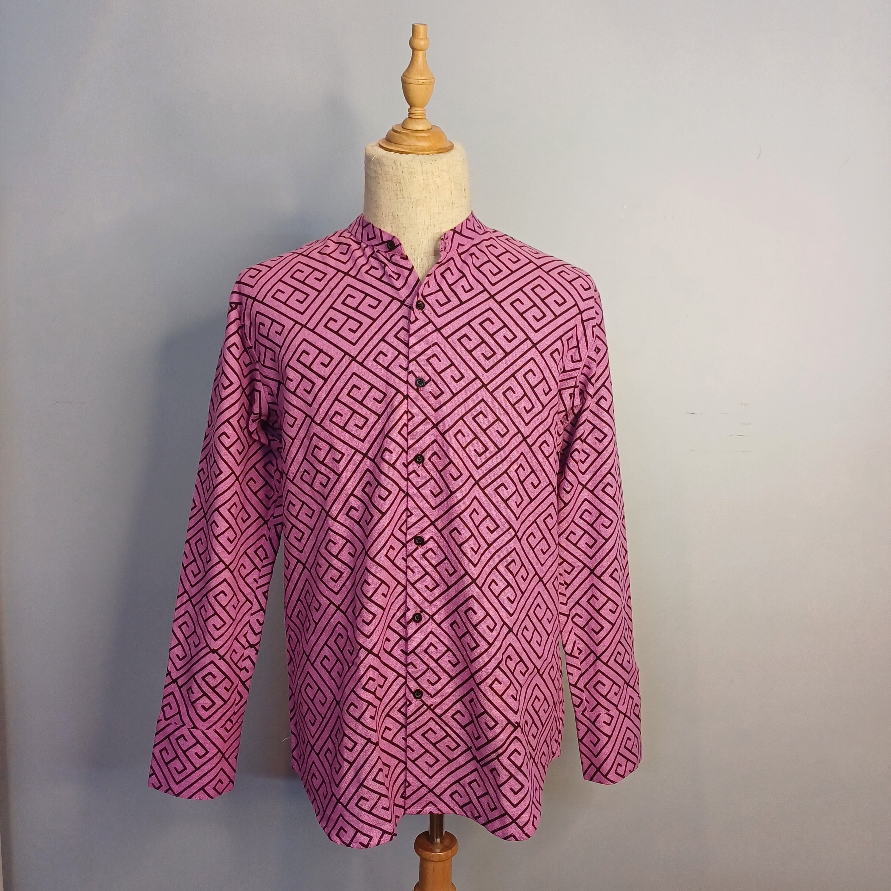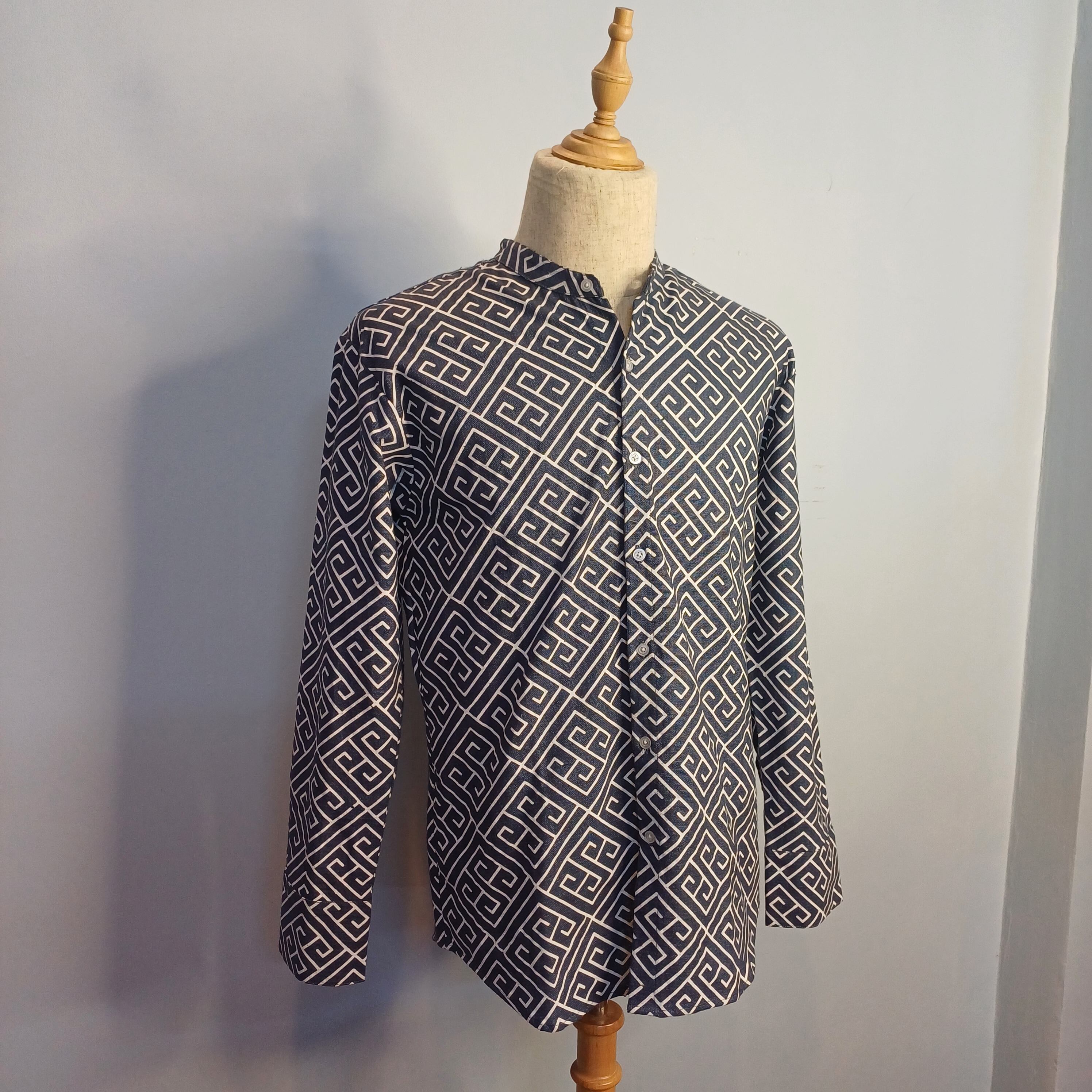The collar design is a band collar, allowing you to button it up or leave it open, both options work well. When buttoned up, it gives a smart look, and when left open, it's more youthful.
