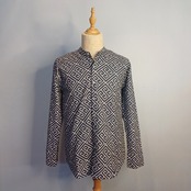 襟はバンドカラデザインでボタンを留めたり、開けたり、どちらもいいです。