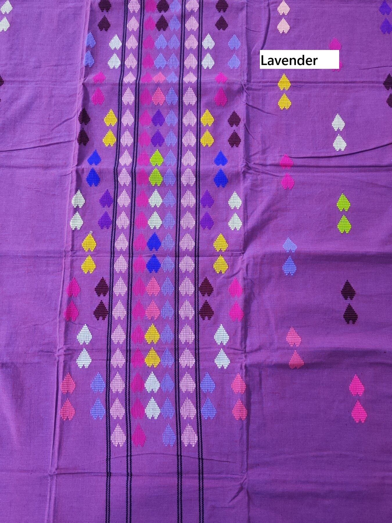 The dimensions are suitable for making a set of a wrap skirt. This Kachin heart-patterned fabric is available in only the color shown in the photo.