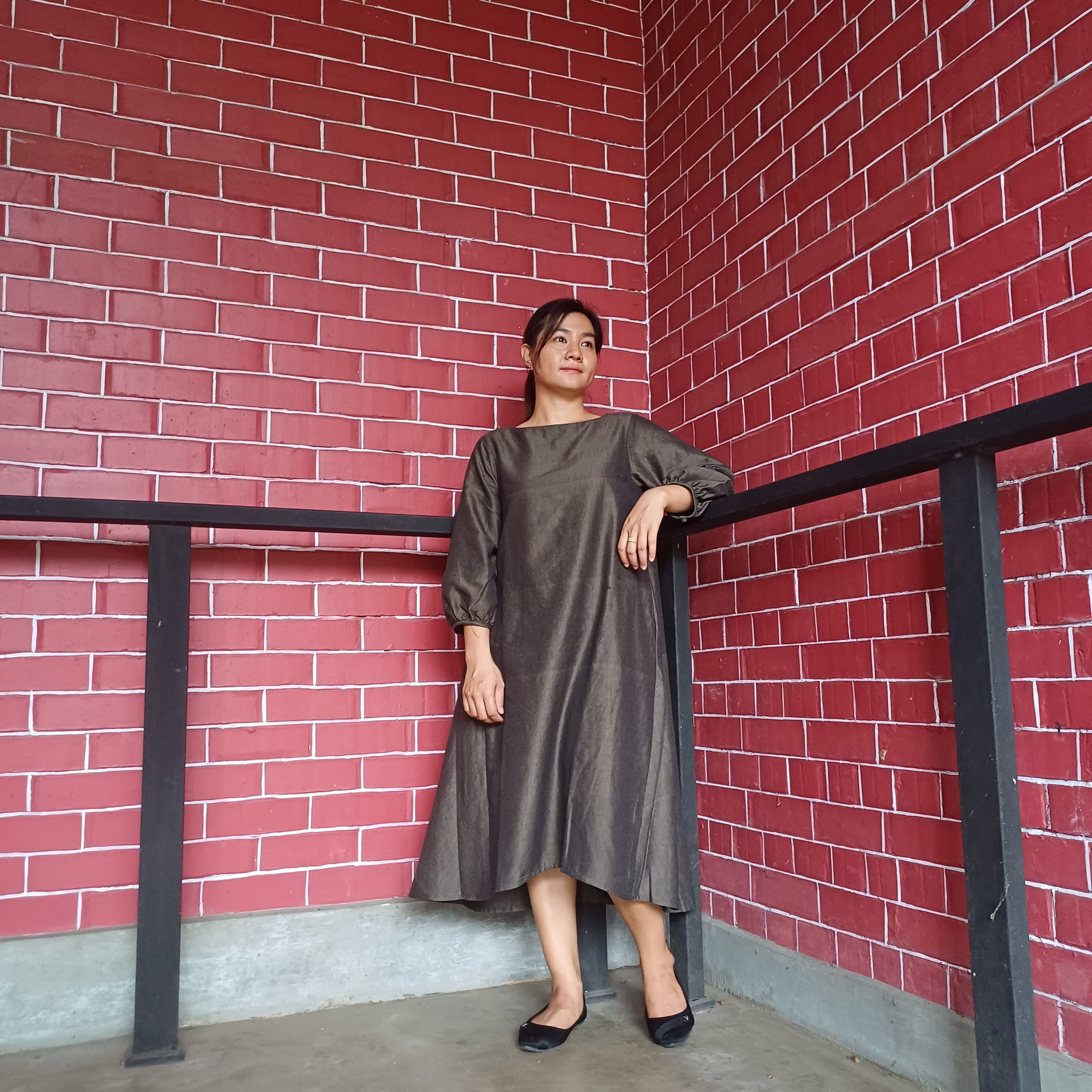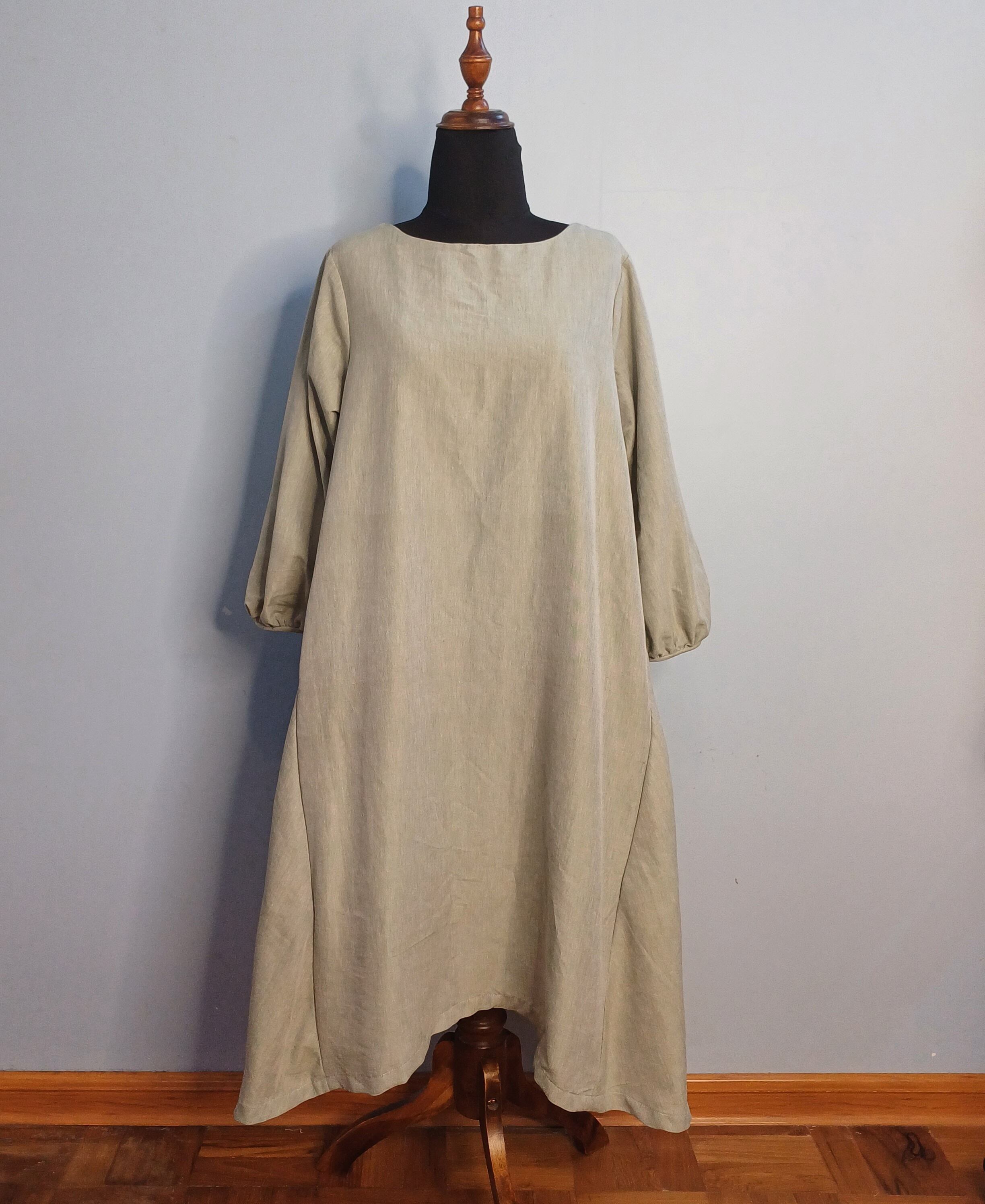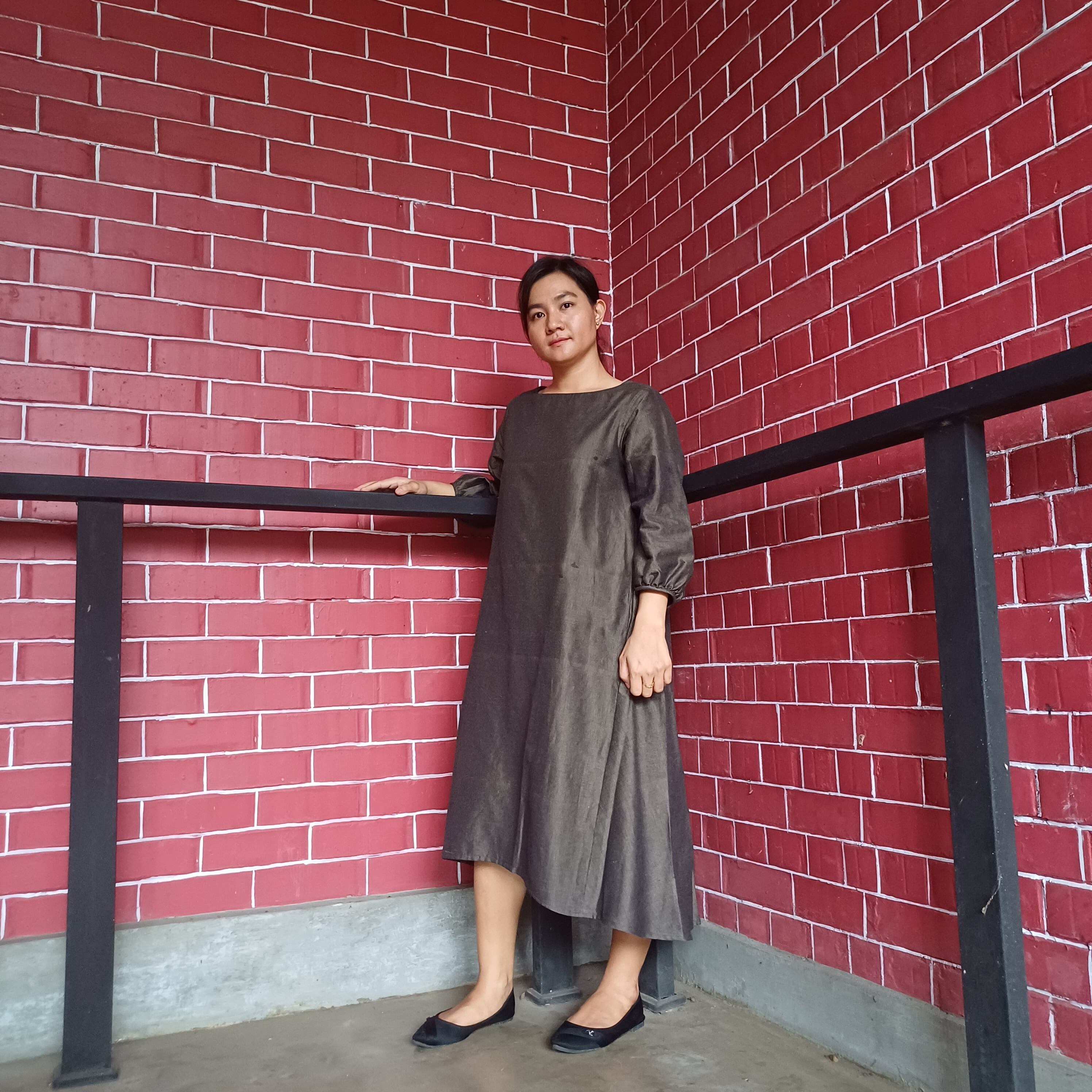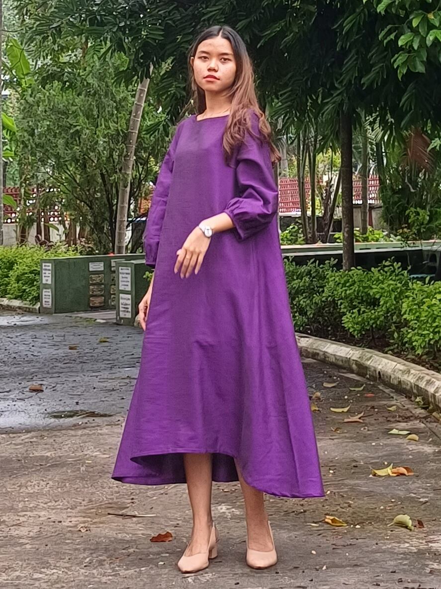 Introducing the 'Amarapura Long-Sleeve Asymmetric Dress' where Myanmar's tradition meets modernity.