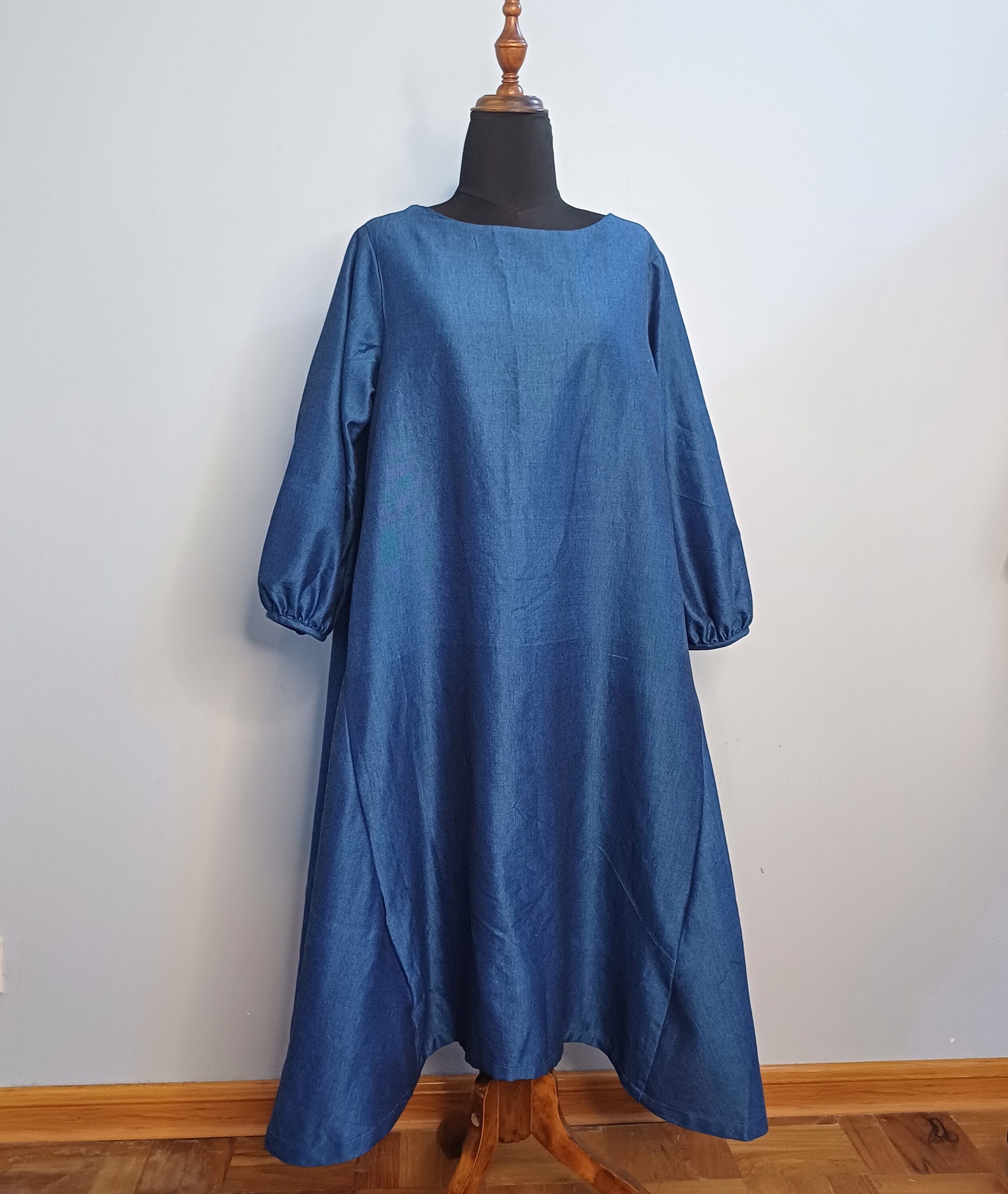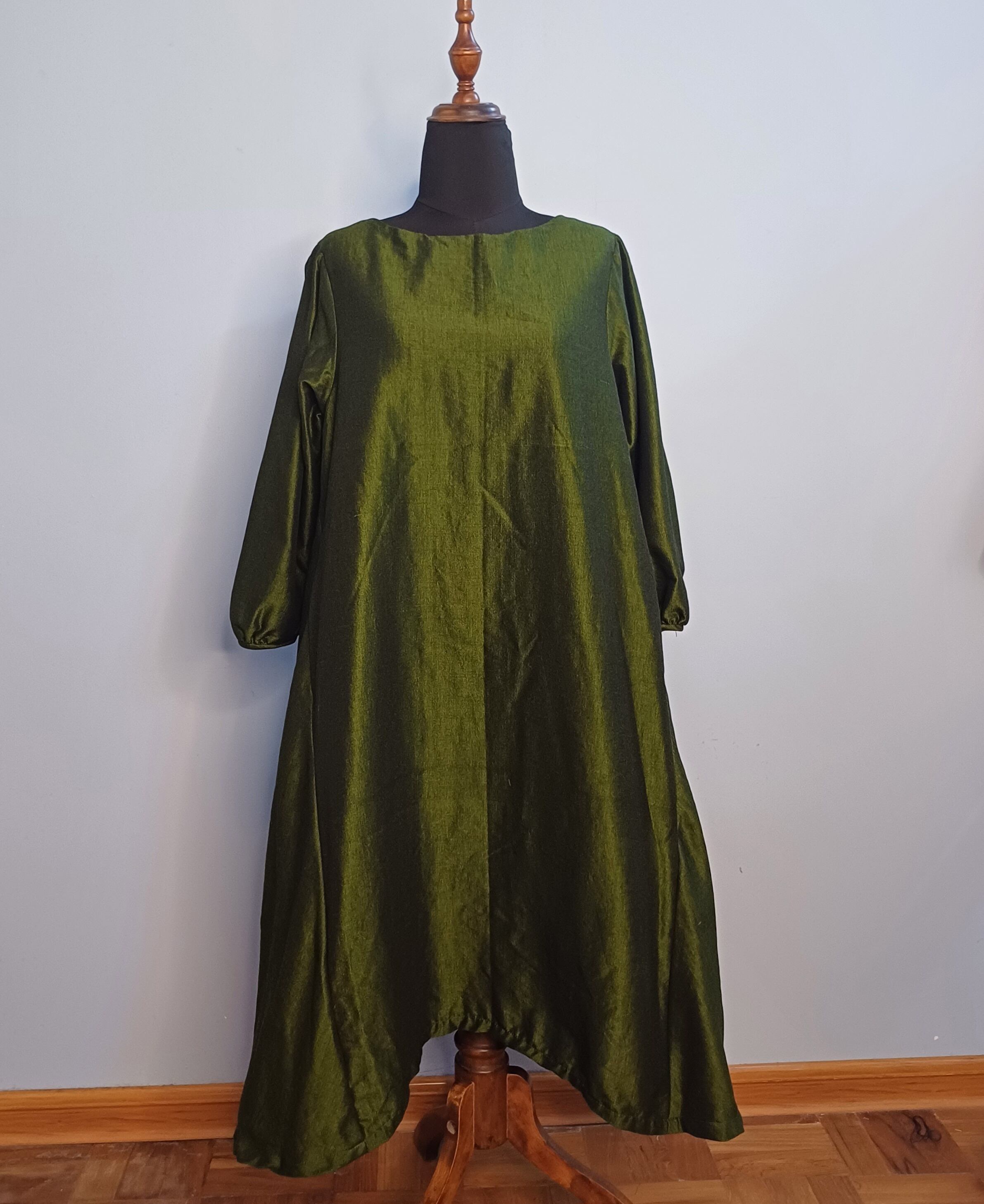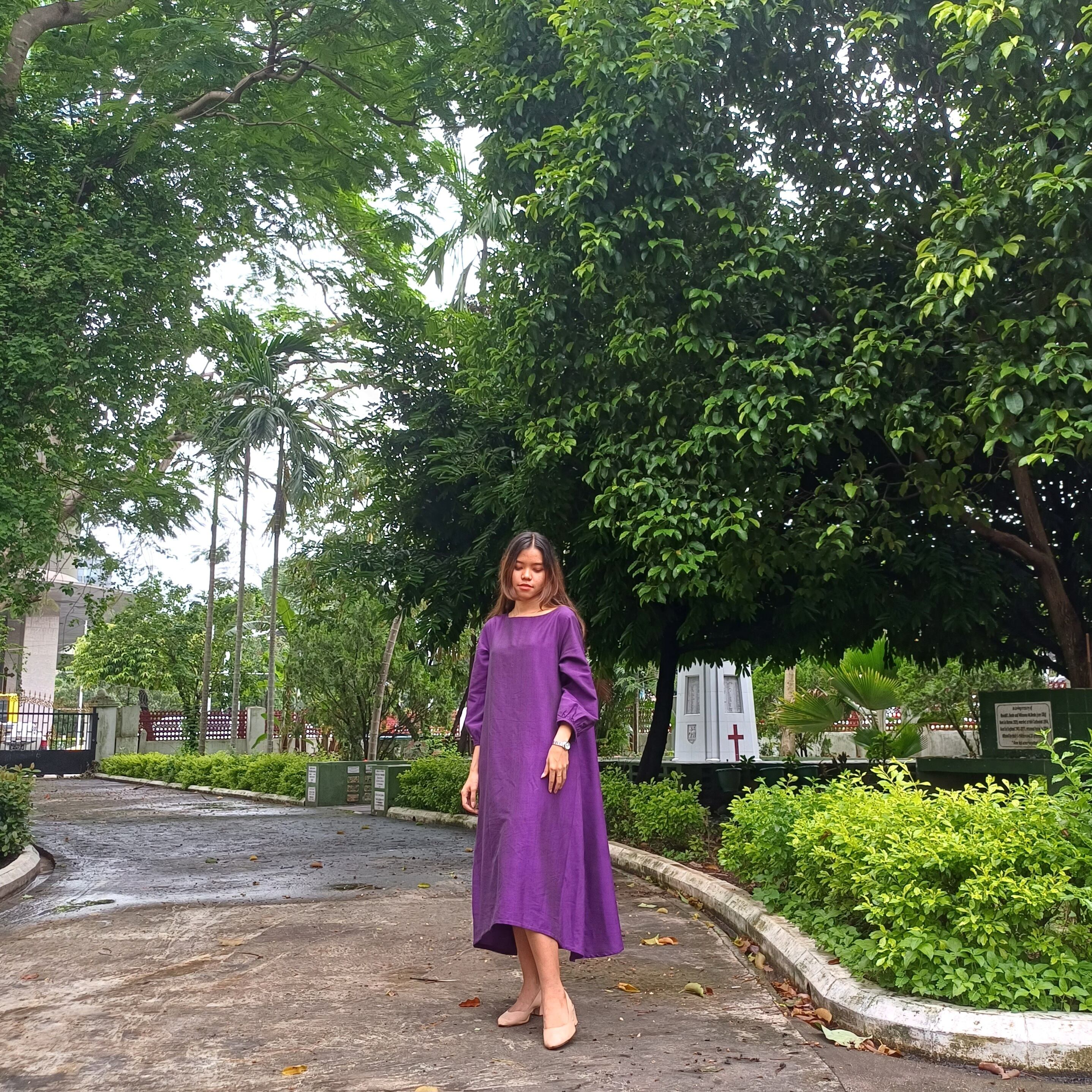 Introducing the 'Amarapura Long-Sleeve Asymmetric Dress' where Myanmar's tradition meets modernity.