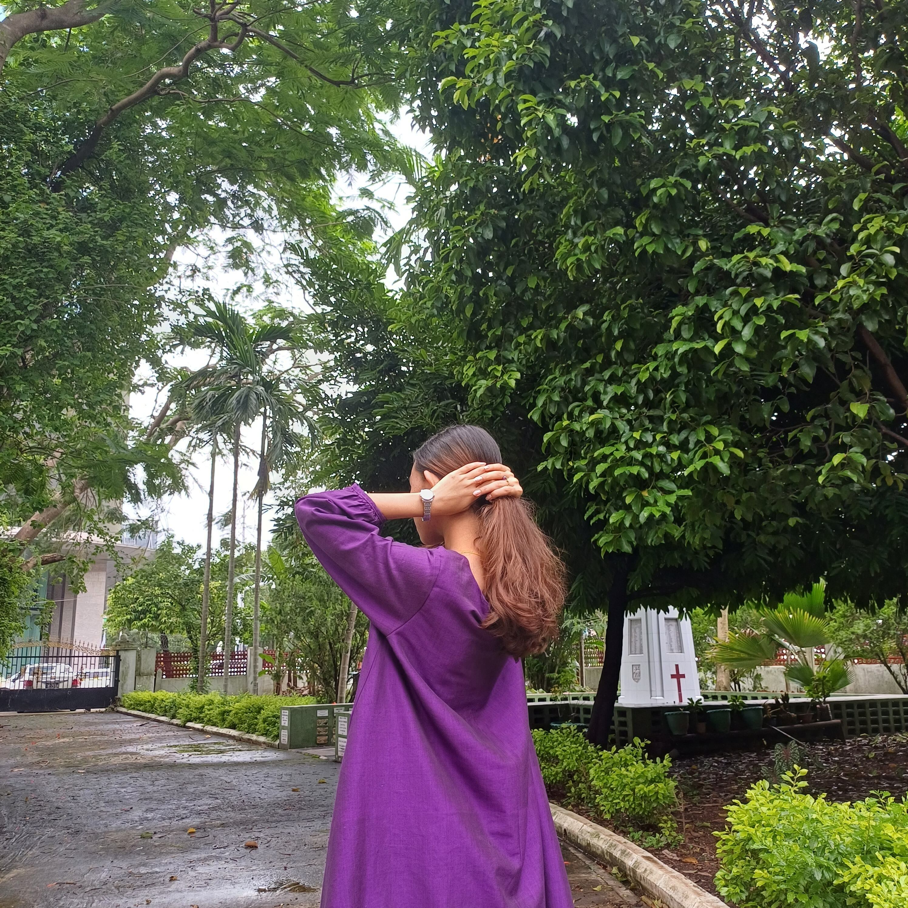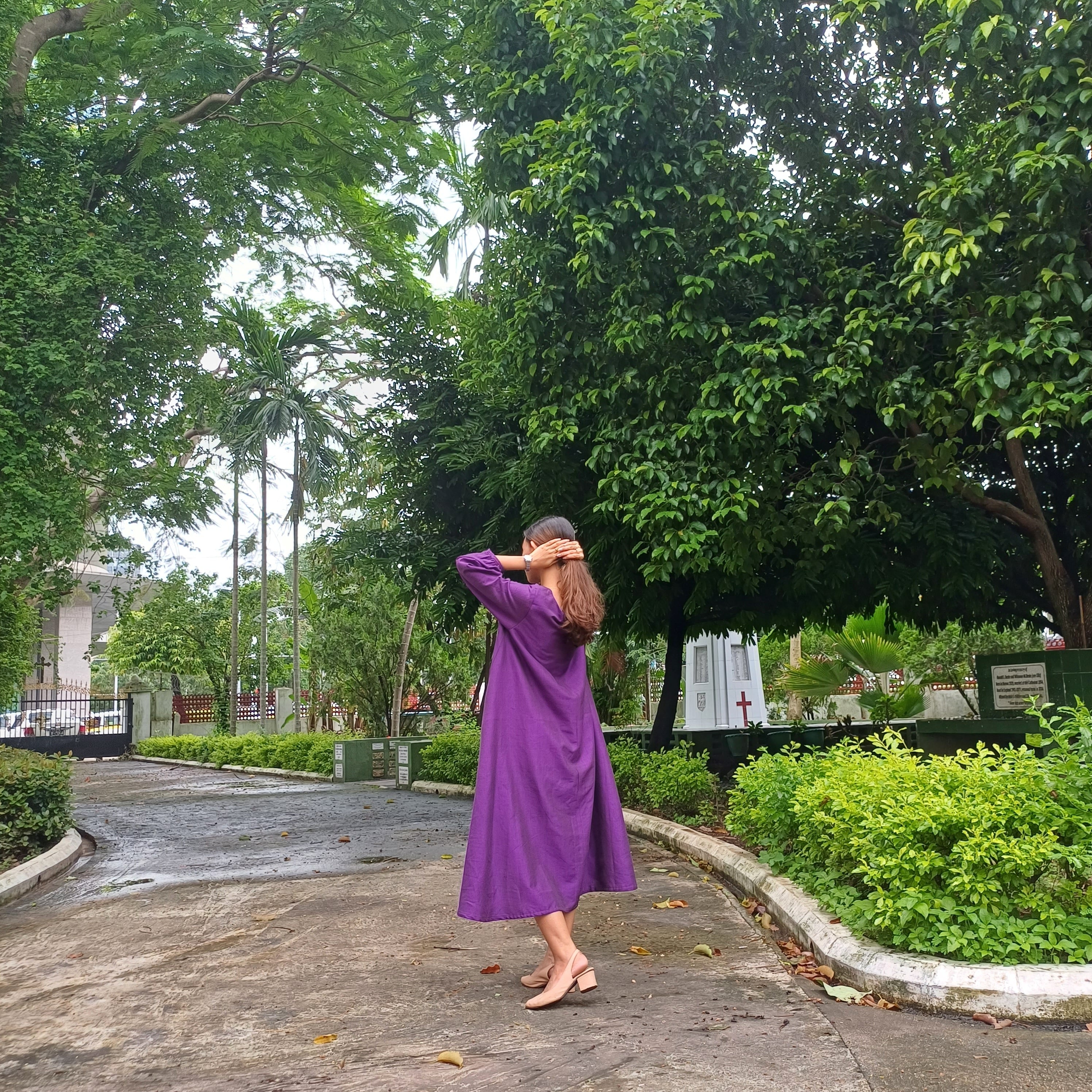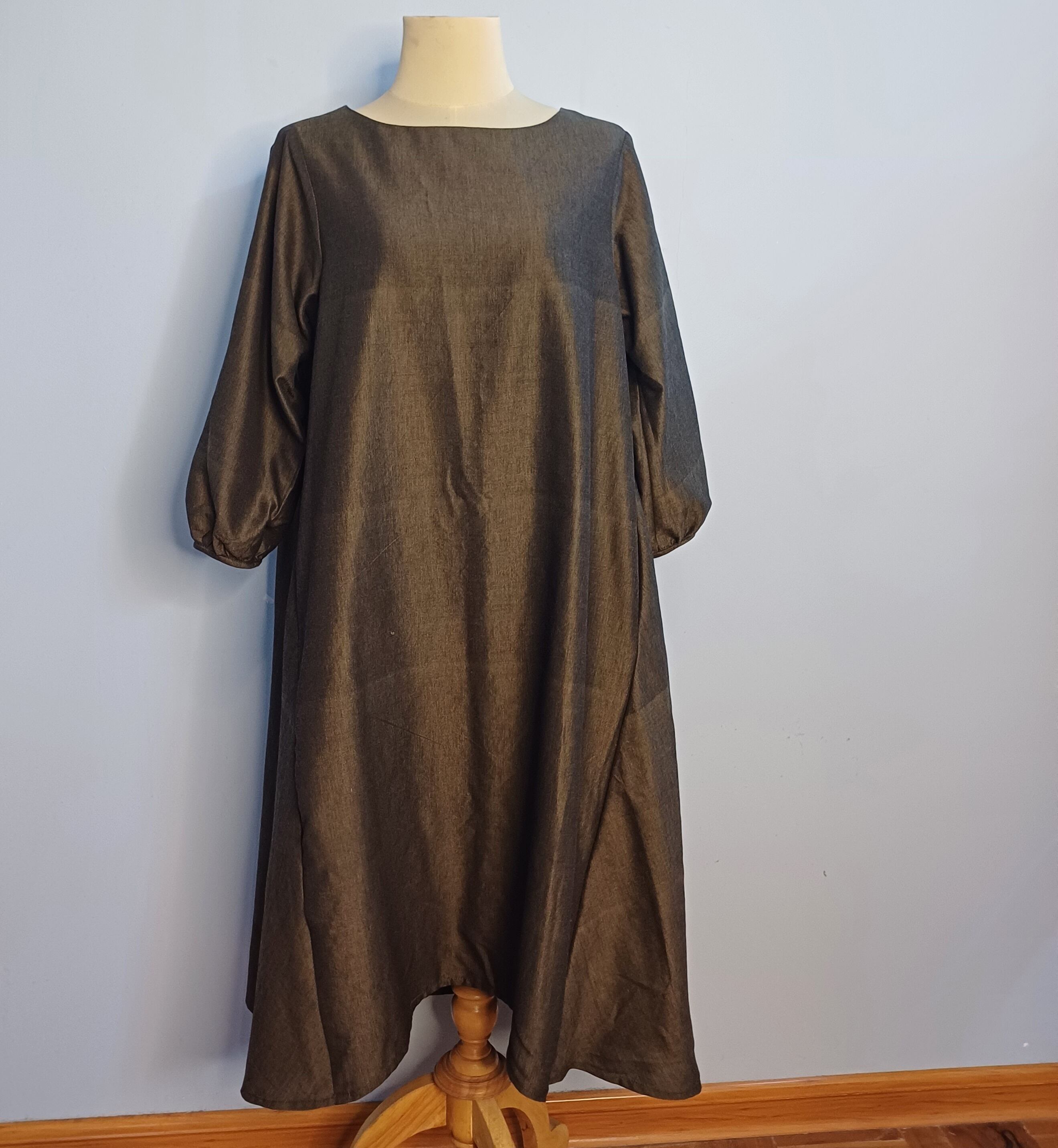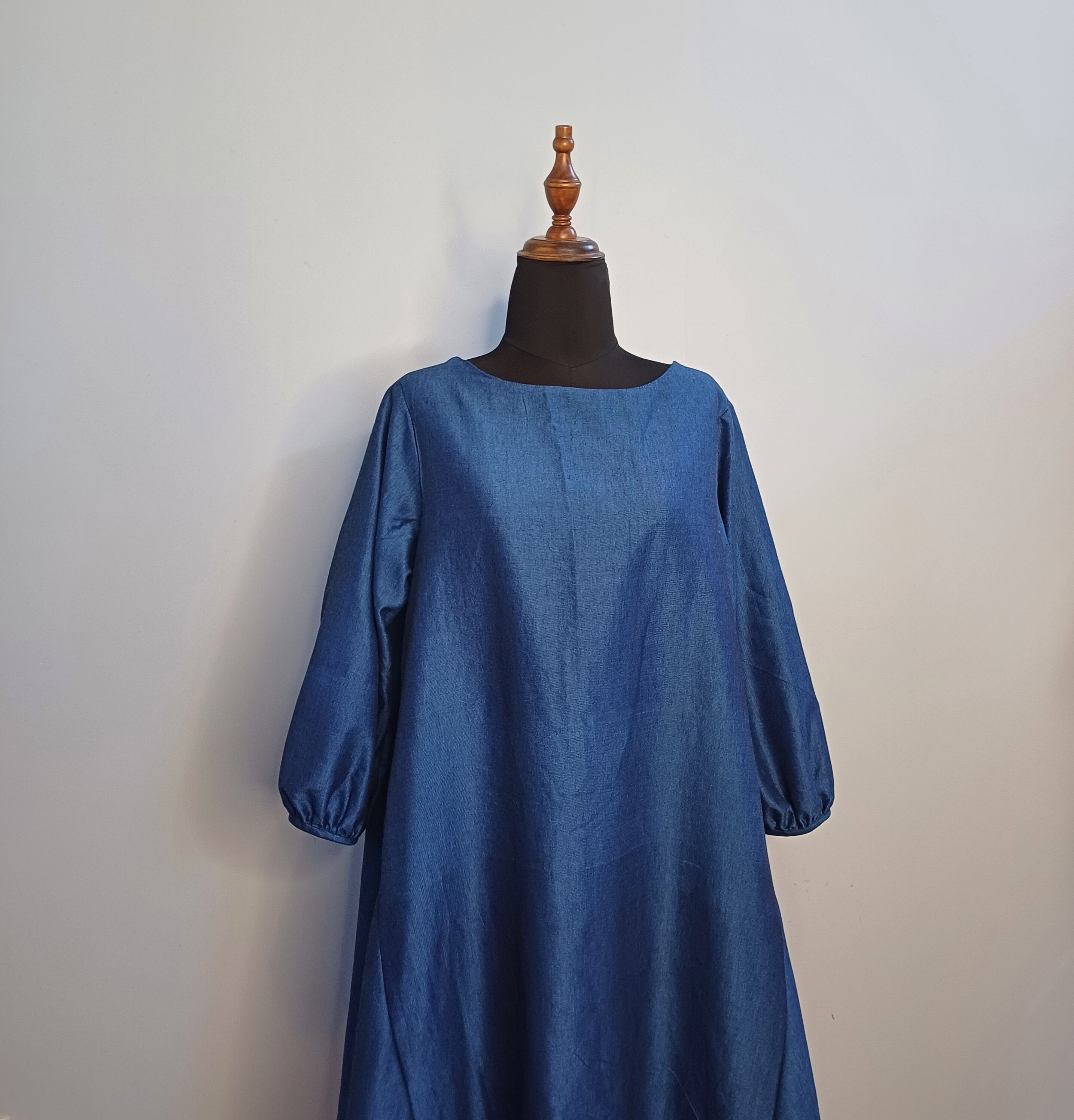 Introducing the 'Amarapura Long-Sleeve Asymmetric Dress' where Myanmar's tradition meets modernity.